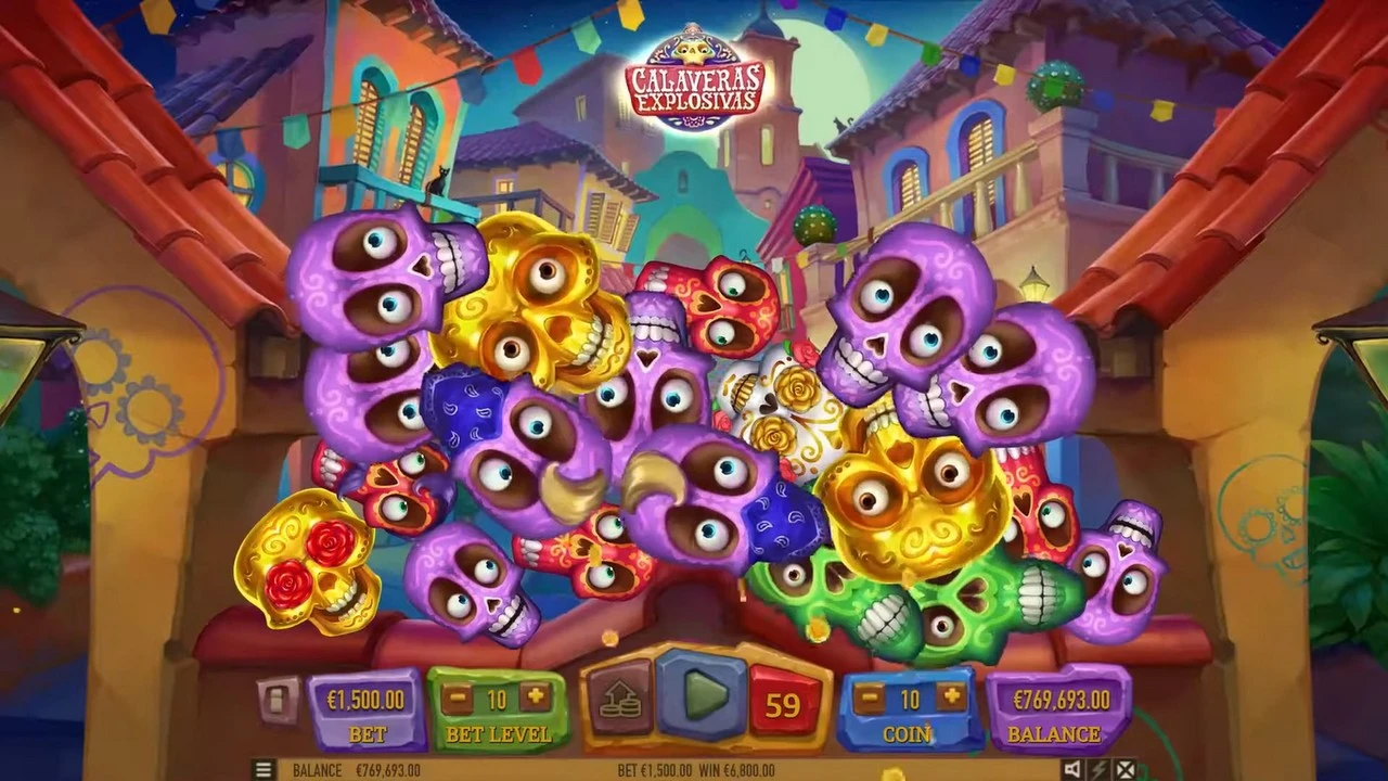 Begitu kamu memulai permainan, layar akan dipenuhi tengkorak berwarna-warni yang menari-nari seolah sedang merayakan “Día de los Muertos” atau Hari Kematian khas Meksiko. Tapi jangan salah, suasana yang dihadirkan bukan menyeramkan, justru penuh semangat, tawa, dan keberuntungan! Setiap tengkorak memiliki warna dan nilai berbeda, yang bisa membawa kamu menuju kemenangan besar.